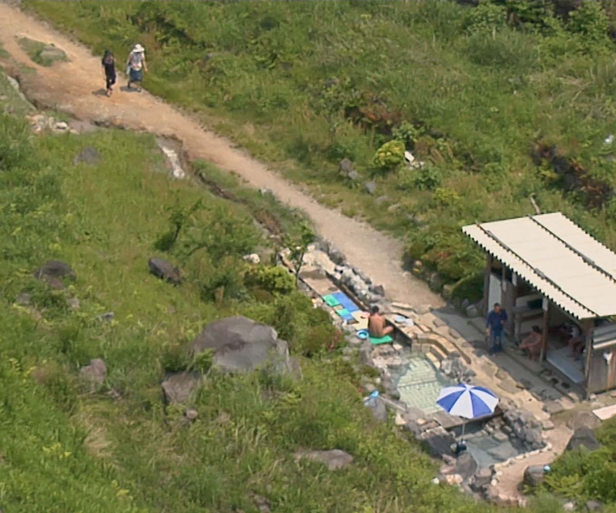 Water’s powerful ability to soothe both body and mind, thanks to its mineral properties, has made Beppu’s hot springs, especially those in the Kannawa District, a favourite healing place for the Japanese. After the Second World War, the city opened treatment centres to deal with the effects of the atomic bomb, taking full advantage of the region’s exceptional location on top of a geothermal hot spot. In this video, this humble communal outdoor bath is an inviting, relaxing environment where people can take a moment for themselves as well as socialize. Men and women occupy separate bathing periods, however the artist, a Korean woman, bathes with Japanese men. This innocuous gesture is one of monumental significance considering the sexual exploitation of Korean women—the history of comfort women —for example. The quiet coexistence of bodies in this context suggests a different path towards healing and reconciliation.