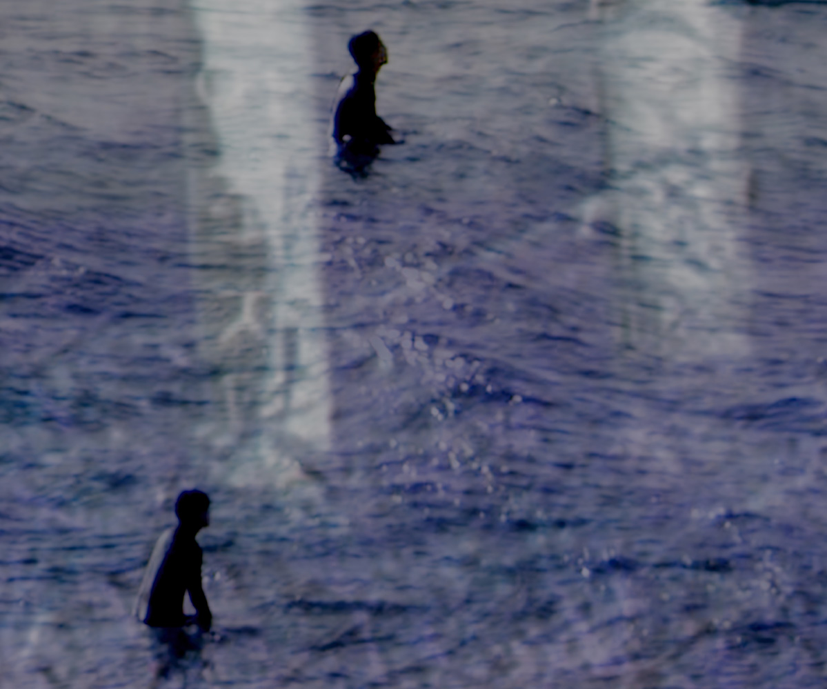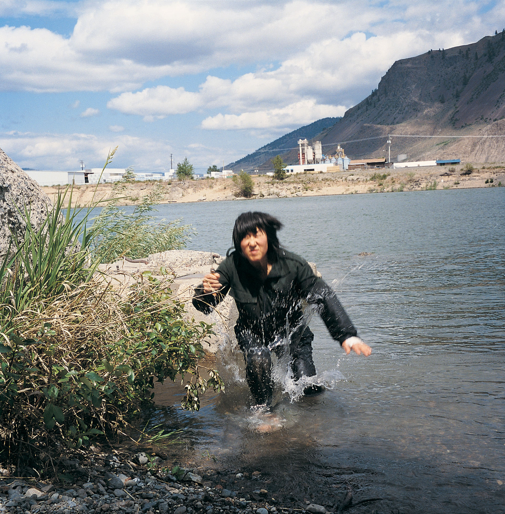 A figure dressed in traditional Korean clothing floats in what appears to be a river, perhaps the Han, but is in fact Paul Lake, near Kamloops BC. Two places merge into one, condensing several stories that follow the flow of memory. The body lies suspended, sinking then reappearing periodically to the rhythm of the water that sometimes submerges it completely. The play of superimposition and transparency creates the illusion of a ghostly presence, an intangible body on the edge of the visible and the invisible, of dreams and reality. Is this woman simply in repose? Or is her body a corpse drifting toward its final resting place?