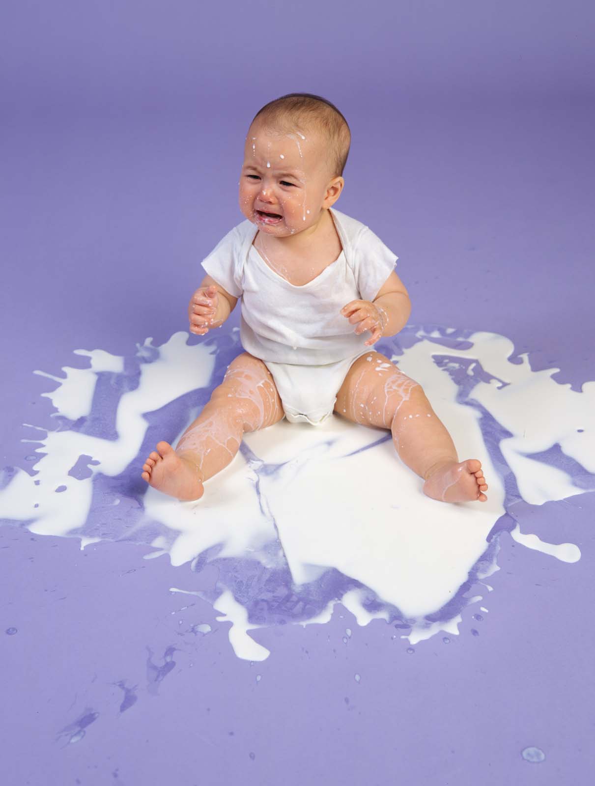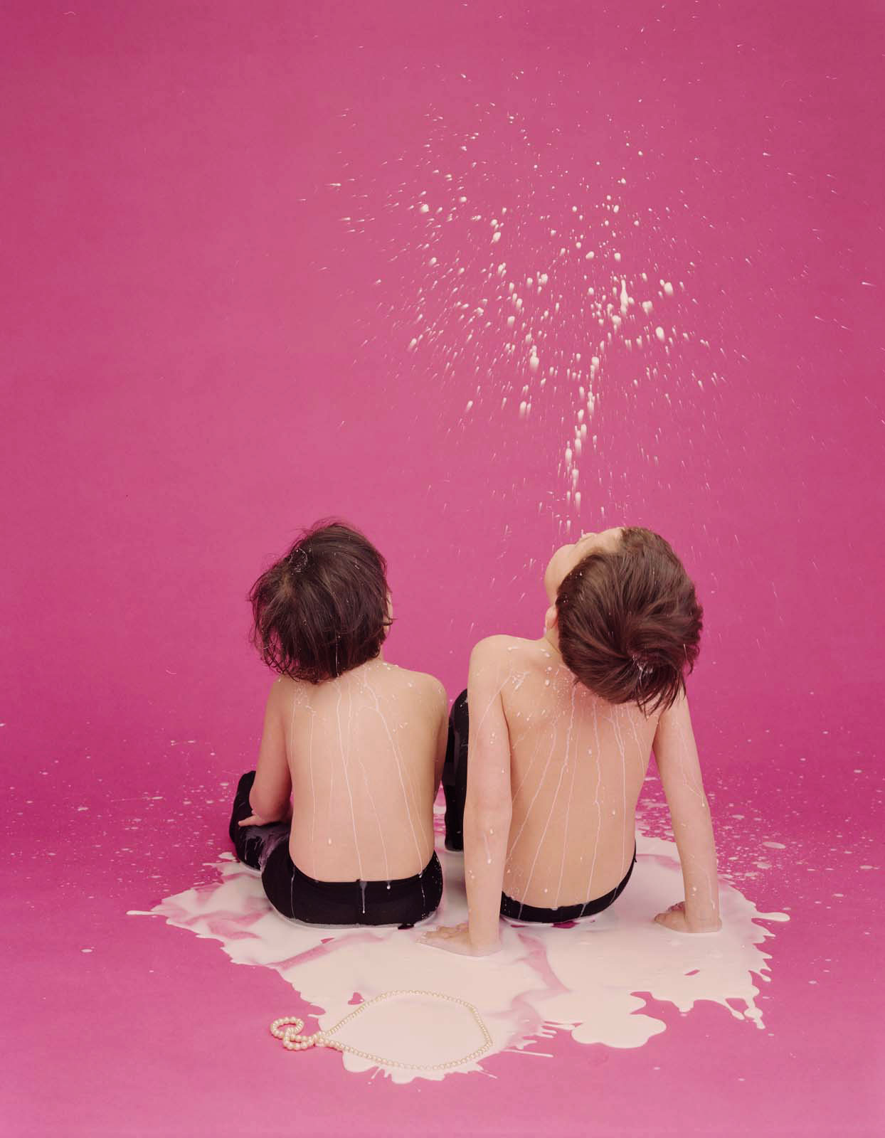 Yoon interrogates the maternal subject in this series, which will especially resonate well with mothers balancing work and child care in the midst of a pandemic. Set against richly coloured backgrounds that refer to advertising, Yoon’s use of “blatant artifice” addresses an important early context for her work—Vancouver photoconceptualism. Critically engaging with other predominantly masculinist practices—Abstract Expressionist drip painting, post-Duchampian practices and performance through a nod to Bruce Nauman’s Self Portrait as Fountain (1966)—Yoon asks: Can artist be both culturally productive and biologically reproductive? Can a racialized, feminist subject be an art historical subject?