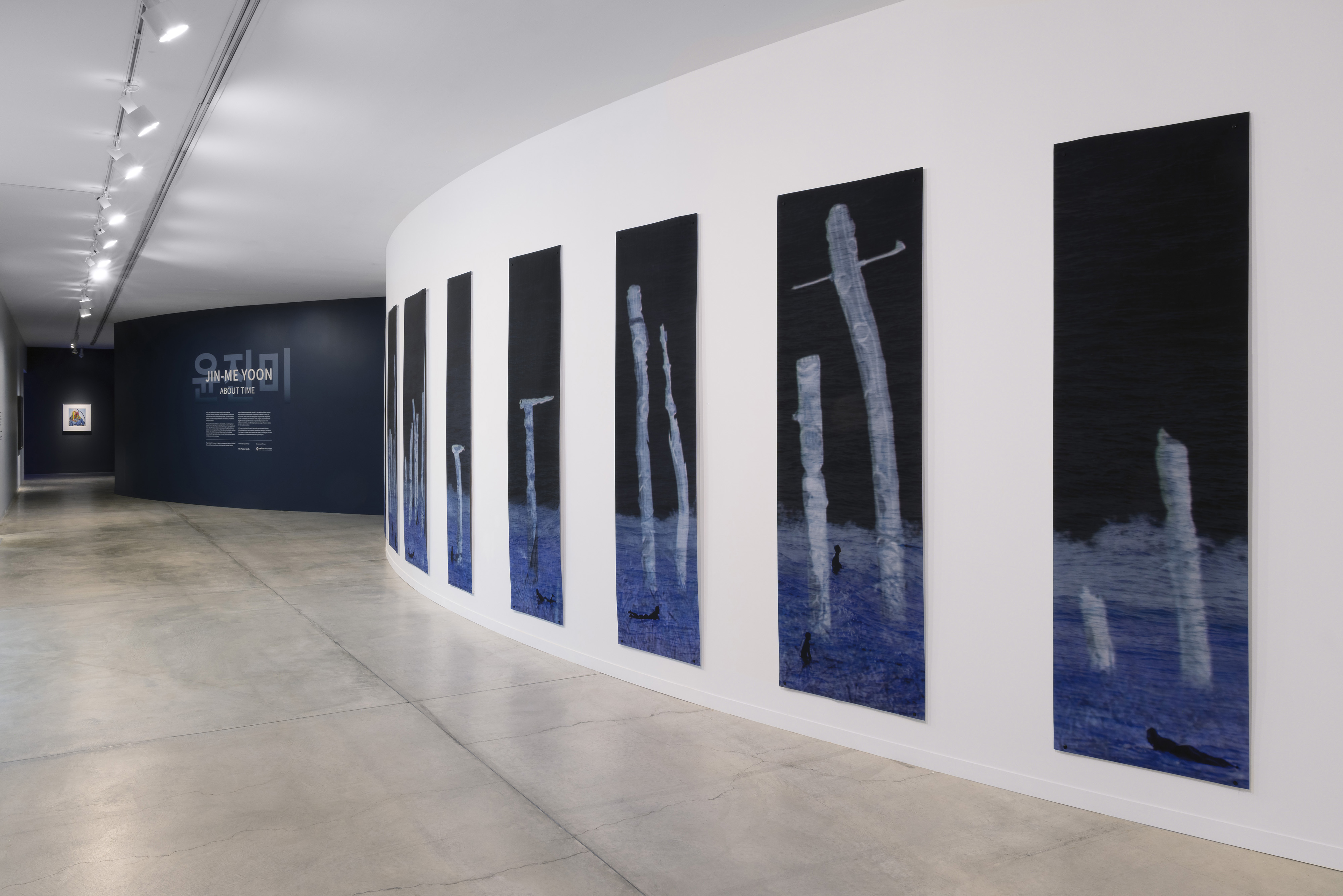Still So (Mul Maeum), 2022, (installation view), nine inkjet prints on bond paper, varied dimensions: 243.8 x 58.9 cm to 243.8 x 92.2 cm, Vancouver Art Gallery, photo credit: Ian Lefebvre and Kyla Bailey
