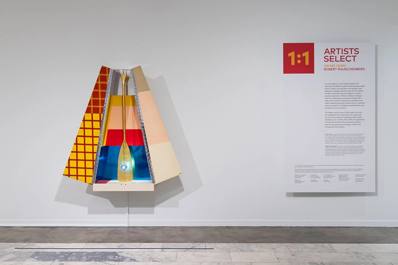 Installation view of 1:1 Artists Select: Jin-me Yoon | Robert Rauschenberg, exhibition at the Vancouver Art Gallery from November 25, 2024 to January 26, 2025, Photo: Vancouver Art Gallery