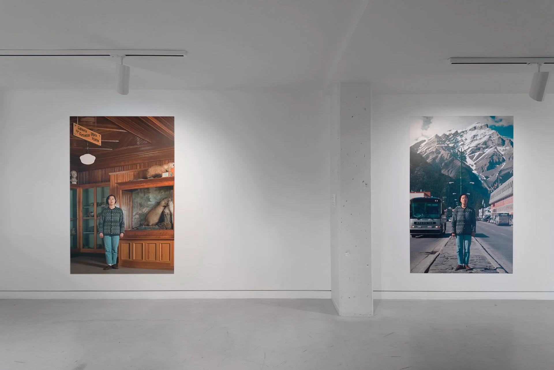 A set of six postcards that featured her wearing a Nordic sweater and jeans posing in front of a museum vitrine, a tour bus, Lake Louise, and other tourist sites, this series plays on the discomfort that her racialized body inserts into the national narratives staged in these postcards. With witty, ironic text on the postcard backs, Yoon unravels those narratives, and interrogates the representational claims made by museums, the tourist industry and photography itself, prompting the viewer to ask themselves who is Canadian? Whose land is this? As Monika Kin Gagnon writes, 'who is the rightful and naturalized national subject, especially given the ongoing history of colonization vis à vis the First Nations peoples?'