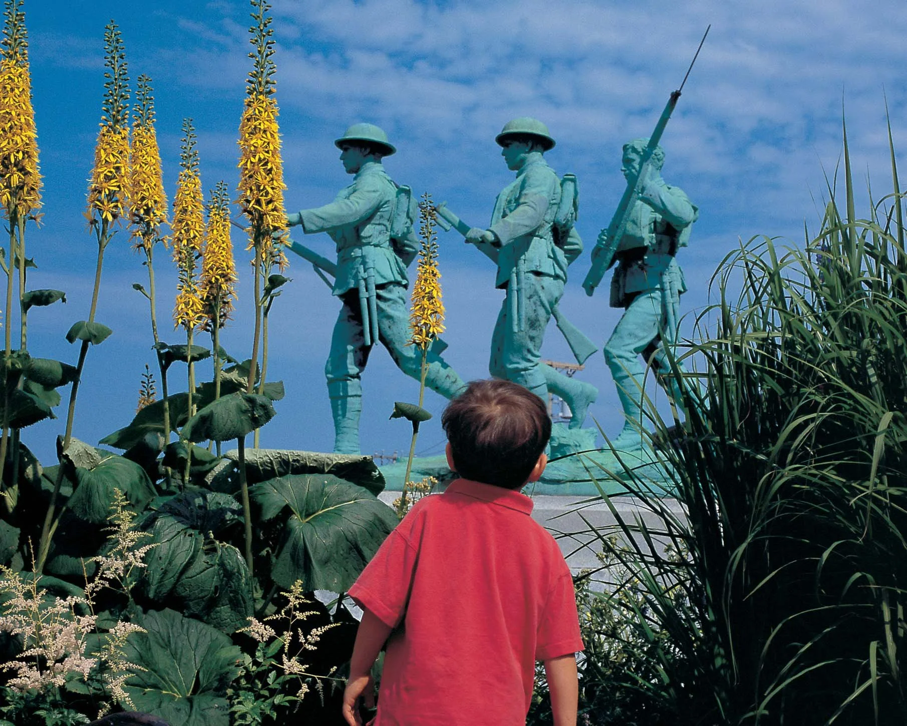 The nine diptychs comprising Touring Home From Away are presented in double-sided lightboxes that resemble advertising panels. Created in Prince Edward Island, whose economy is based mainly on agriculture and tourism, the images create an entwined narrative that explores not only the island’s iconic sites and features—the house of the main fictional character in the novel Anne of Green Gables, a lighthouse, a potato field with its furrows of red earth—but also generic, everyday places: a convenience store, a Tim Hortons, an amusement park, and a superstore. The combination of these two types of imagery, staged photographs and imitations of family snapshots, undermines the idyllic portrait promoted by the tourism industry. By presenting the works recto-verso, the artist literally shows both sides of the images, playing on reversal to disrupt the narrative and reveal what often remains unseen.