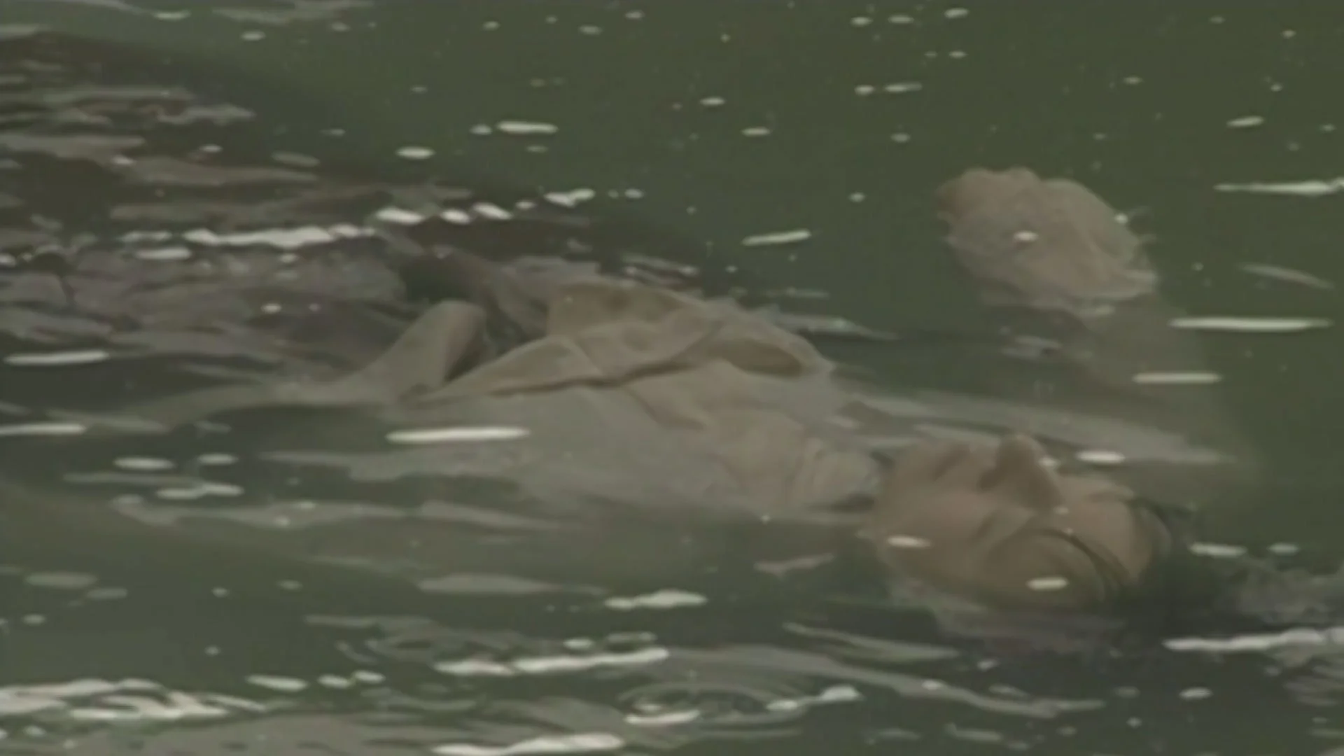 A figure dressed in traditional Korean clothing floats in what appears to be a river, perhaps the Han, but is in fact Paul Lake, near Kamloops BC. Two places merge into one, condensing several stories that follow the flow of memory. The body lies suspended, sinking then reappearing periodically to the rhythm of the water that sometimes submerges it completely. The play of superimposition and transparency creates the illusion of a ghostly presence, an intangible body on the edge of the visible and the invisible, of dreams and reality. Is this woman simply in repose? Or is her body a corpse drifting toward its final resting place?